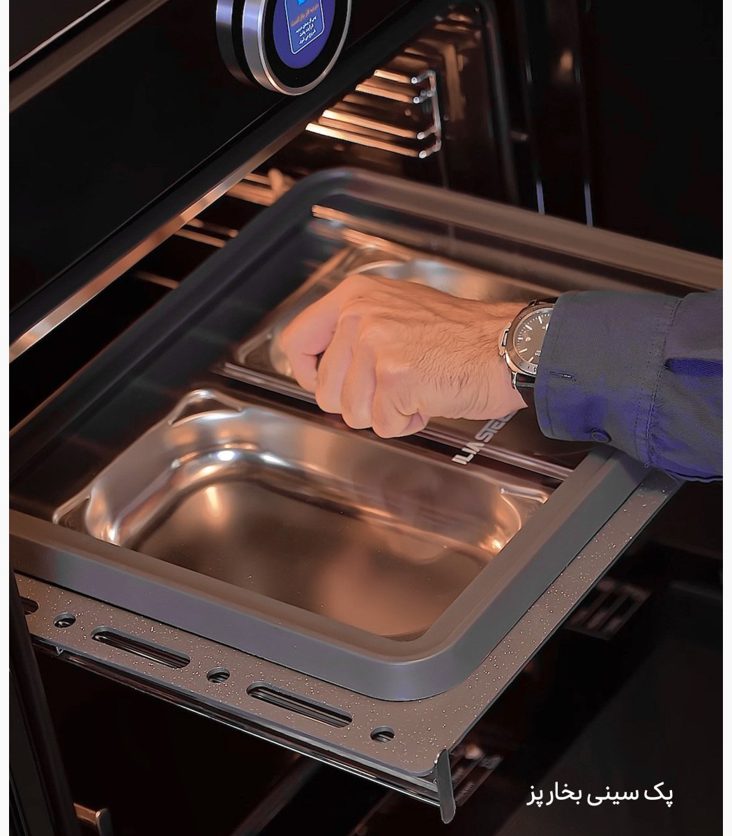 همراه فر ایلیااستیل مدل 119 اقلامی مانند دستکش پارچه ای، پیشبند, سیخ جوجه گردان, سینی لعابی عمیق، سینی استیک پز, شلف اصلی, شلف بغل, شلف جوجه گردان و یک عدد اسپری تمیزکننده وجود دارد.