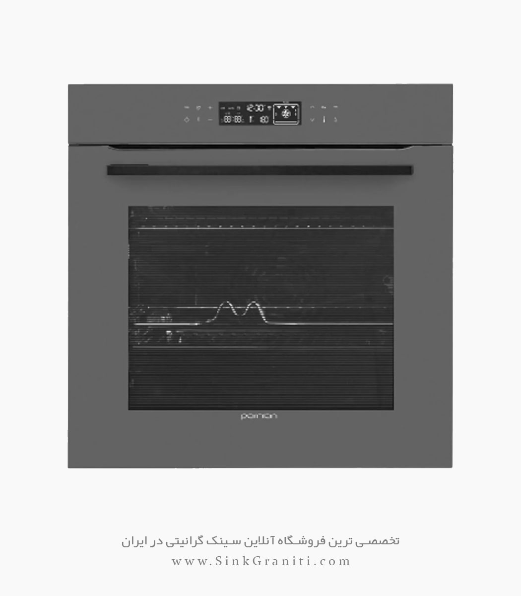 فر برقی پرنیان استیل مدل PO110G رنگ طوسی ابعاد 57*59*59 سانتیمتر – مجهز به جوجه گردان, سنسور حرارتی, دارای فن خنک کننده بدنه فر, درب شیشه ای 4 جداره جداشونده, دو طبقه ریل تلسکوپی, دو عدد لامپ, دیواره چربی زدا Easy To Clean, فن کانوکشن, قفل کودک, گریل, لولای آرام بند و آرام بازشو, مجهز به سنسور پخت غذا می باشد.