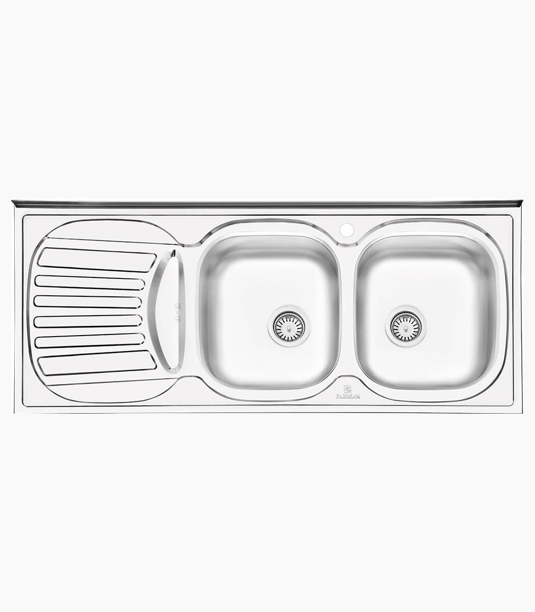 سینک پرنیان استیل مدل PS2106 با دو لگن بزرگ نیمه عمیق فضای بیشتری را برای استفاده و شستشو در اختیار شما قرار خواهد داد. با نصب سینک پرنیان آشپزخانه شما به یک فضای کاری موقت تبدیل خواهد شد. با انتخاب سینک استیل پرنیان کارایی آشپزخانه خود را بهبود دهید.